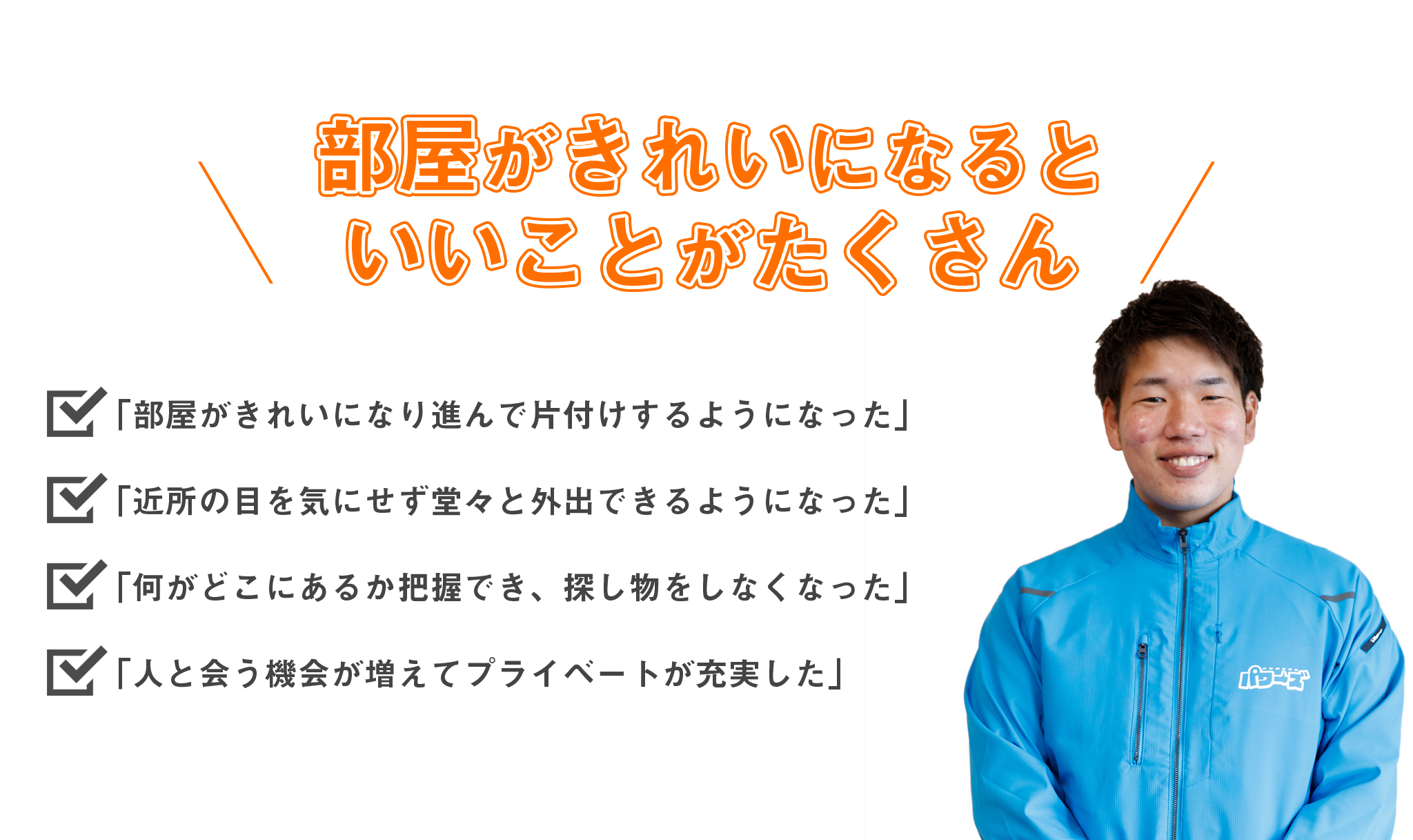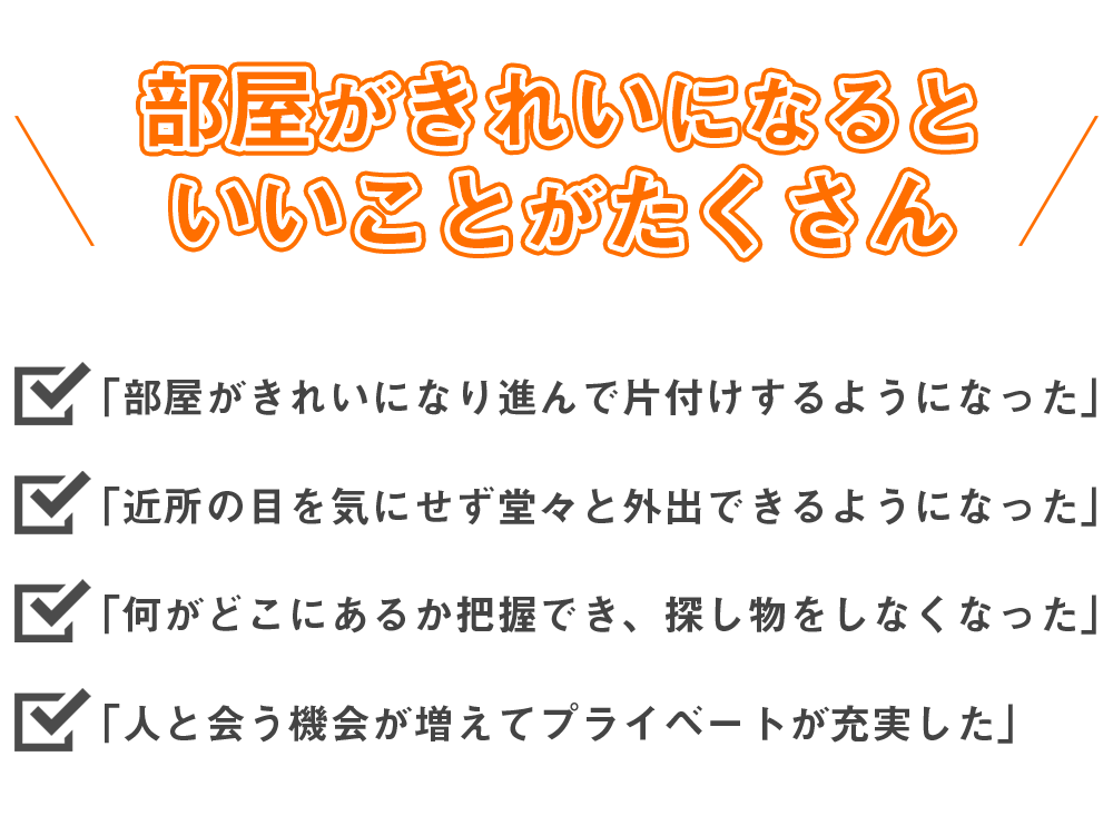 私たちは様々な理由でゴミ屋敷・汚部屋になってしまった人のサポートをしたい、そして1日でも早く快適な生活が送れることを願っています。